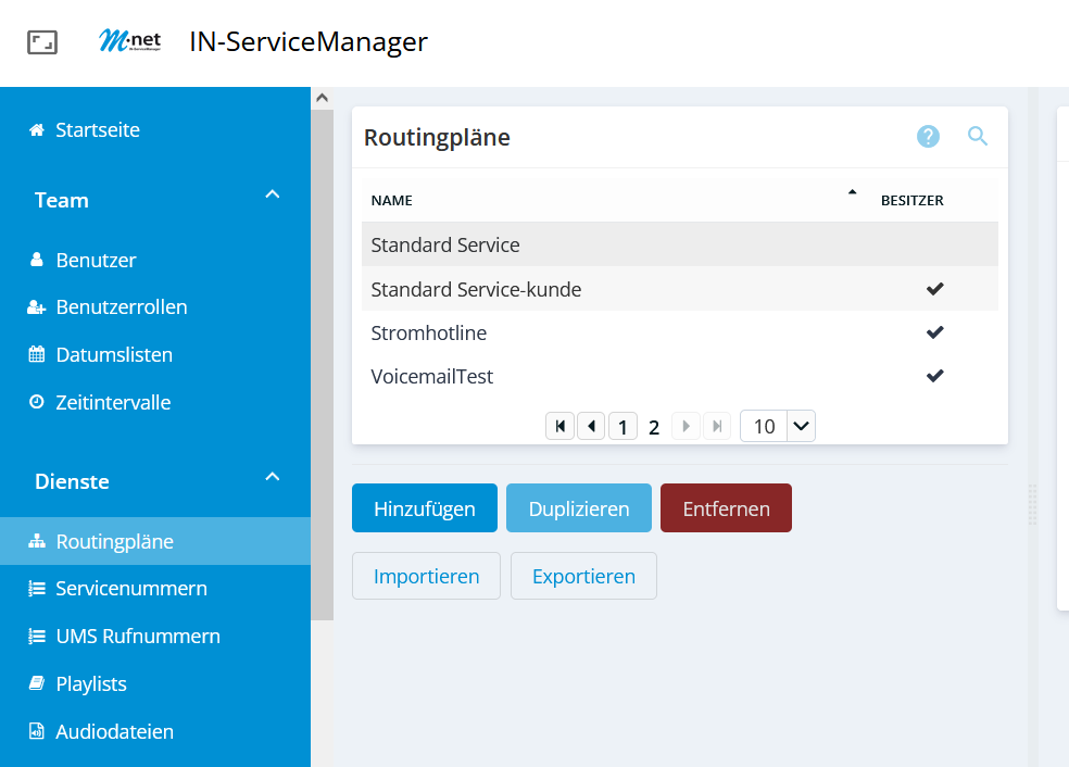 Um die Routingpläne zu verwalten, klicken Sie in der Menüleiste auf Dienste > Routingpläne.