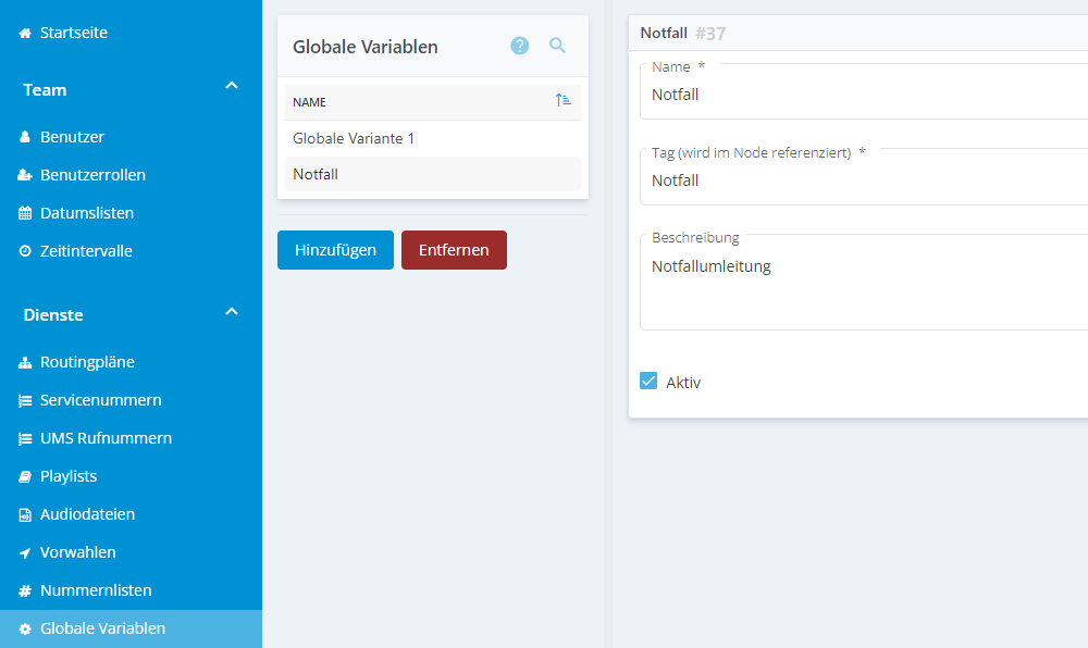 Administratoren können auf dieser Seite die globalen Variablen verwalten.