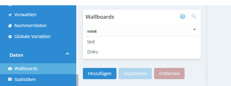 Um Wallboards zu verwalten, klicken Sie in der Menüleiste auf Daten > Wallboards.