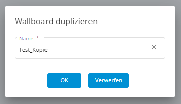 Klicken Sie in der Menüleiste auf Daten > Wallboards. Eine Liste der bereits definierten Wallboards wird angezeigt. Wählen Sie ein gewünschtes Wallboard aus. Klicken Sie auf Duplizieren.