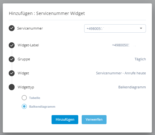 Klicken Sie auf Hinzufügen. Das Widget wird erstellt und die Daten auf dem Wallboard angezeigt.