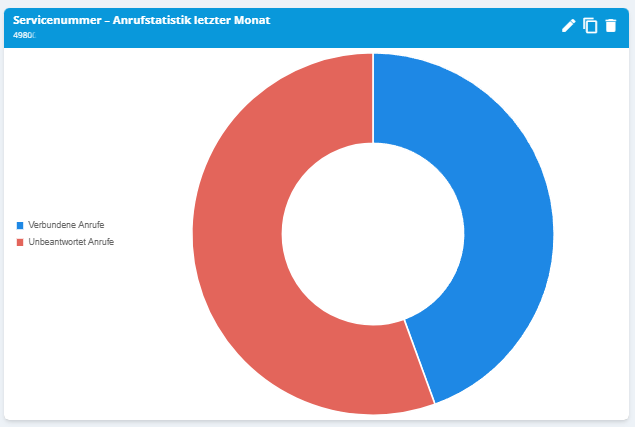 Administratoren können Wallboards erstellen, um wichtige Leistungsstatistiken für das Unternehmen in grafischer Form anzuzeigen. So ist es möglich sich einen schnellen Überblick über alle relevanten Daten zu den Servicerufnummern zu verschaffen.