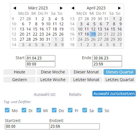 5. Legen Sie den Zeitraum fest, für den die Daten analysiert werden sollen.