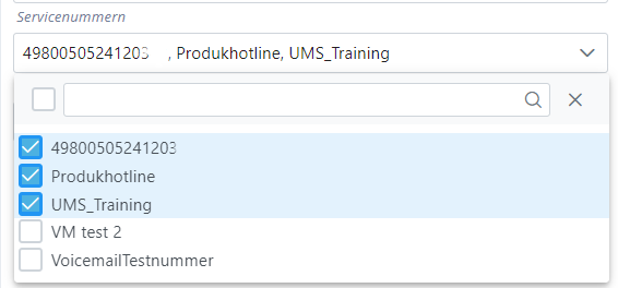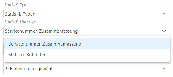 3. Wählen Sie die Servicenummern aus für die der Statistik-Typ „Servicenummer-Zusammenfassung“ erstellt werden soll. Für den Statistik-Typ „Rohdaten“ ist dies nicht erforderlich.