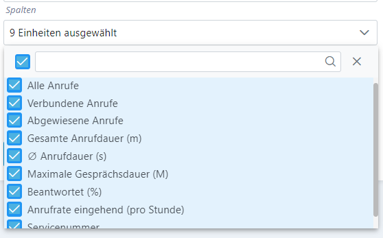 | Alle Anrufe | Die Anzahl aller Anrufe je Servicerufnummer im ausgewählten Zeitraum. |