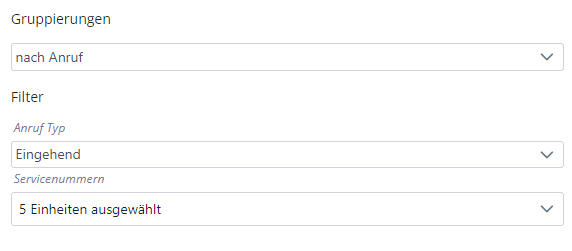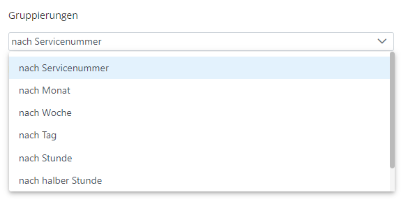Um das Ausgabeformat der Statistikdaten zu definieren steht Ihnen beim Typ „Servicenummern-Zusammenfassung“ die folgenden Gruppierungsoptionen zur Verfügung:
