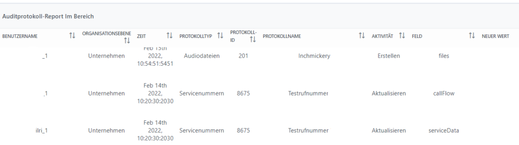 Mit Hilfe der Daten können sämtliche administrativen Änderungen im System nachvollzogen werden.