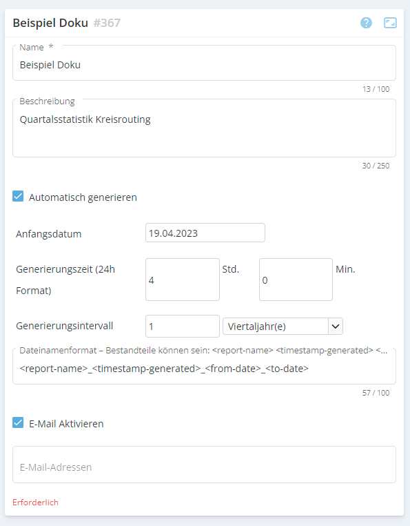 - Um diesen Report automatisch an eine E-Mail-Adresse zu senden, aktivieren Sie das Kontrollkästchen E-Mail Aktivieren